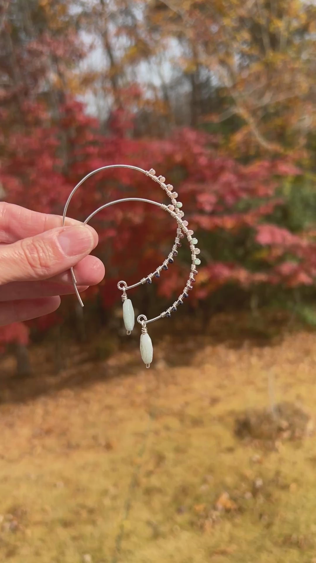 One-of-a-Kind Sterling Silver Hoop Earrings with Aquamarine, Lapis & Garnet – Handmade Wearable Art