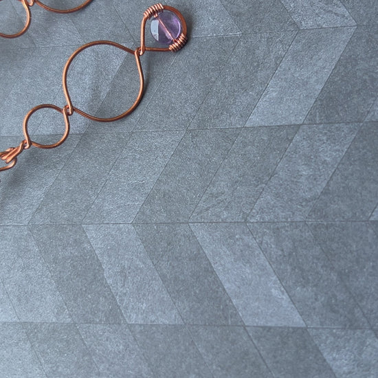 Expertly crafted with a delicate lightweight design, these Triple Loop Copper Earrings feature stunning amethyst coin beads. Each pair is one of a kind and boasts an anti-tarnish coating for lasting beauty. Watch the skilled artistry behind their creation on Carrie Foscato Design YouTube channel.